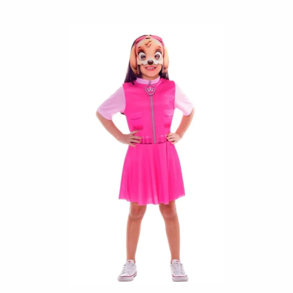 A fantasia da Skye da Patrulha Canina, produzida pela Novabrink/Super Magia, é um conjunto infantil licenciado que transforma crianças na corajosa filhote piloto.